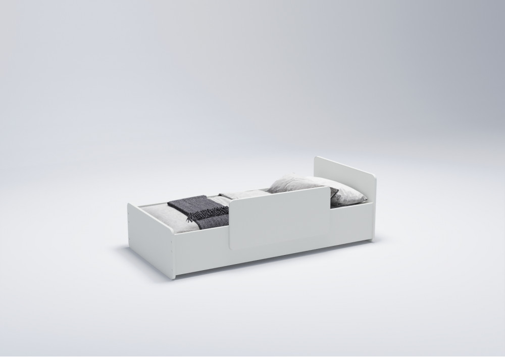 1. Дизайн и безопасность: Кровать невысокая с изголовьем, обеспечивая дополнительный комфорт и поддержку во время сна. Съемный увеличенный бортик безопасности может быть установлен в любом месте кровати или полностью убран по желанию родителей. Это обеспечивает дополнительную защиту и комфорт во время сна.