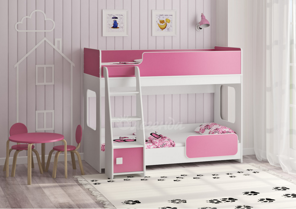 Высота кровати – всего 1405 мм.Удобно - взрослый может заправить кровать,не забираясь на второй ярус.