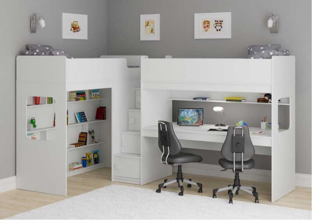 Две кровати, огромный стол, игровая зона – одна лестница. Идеальный вариант для двоих детей!
